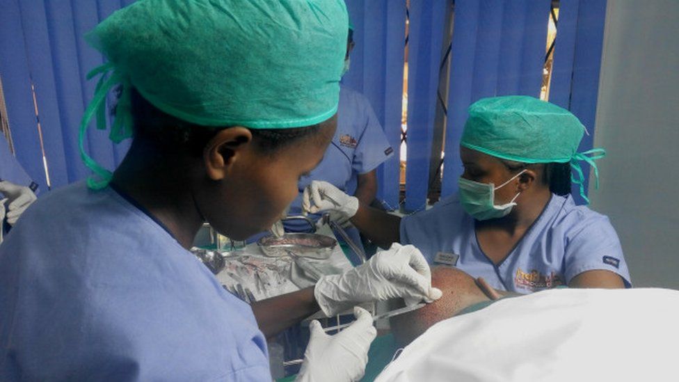 Mteja katika kliniki moja kenya akipandikizwa nywele